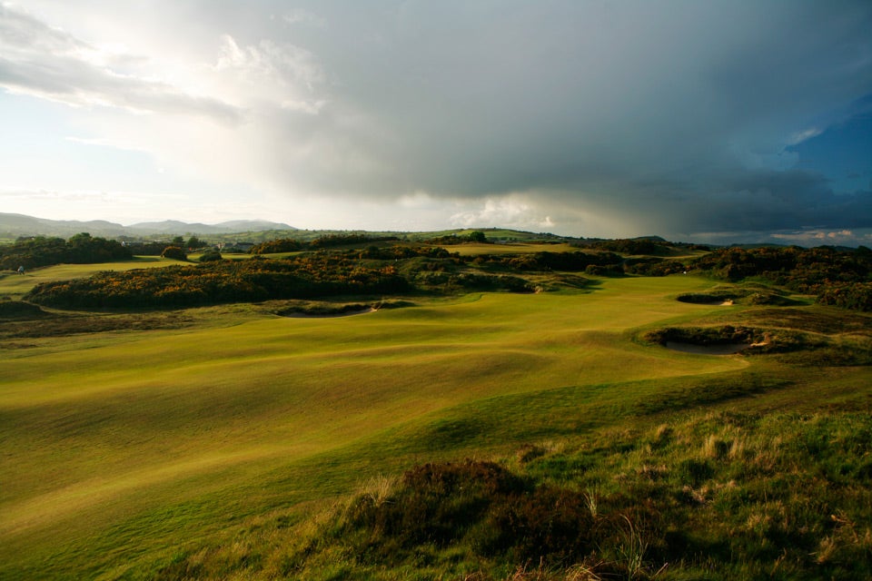 The evolution over more than 130 years of this design is fascinating and has yielded what many consider to be the game’s finest front nine. Blind tee shots abound, in brilliant fashion at such holes as 2, 5 and 9. On the back side, one feature that was recently expunged was a natural pond 100 yards shy of the 17th green. Member George Combe deserves much of the credit for RCD as he shepherded the course through the transition to the rubber core Haskell ball 120 years ago. Forty percent of the World top 15 (here, Pine Valley, Oakmont, Royal Dornoch, Pebble Beach and Merion) derived much of their substance from individuals who built few other courses. Such designs enjoy their own unique voices with County Down further blessed with staggeringly handsome long views of the Irish Sea, the Mountains of Mourne and the red-brick steeple of the Slieve Donard Hotel. (Photo: Evan Schiller)