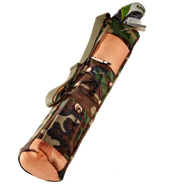 The Seamus Fescue Project Woodland Camo is for the golfer who wants to stand out with a unique, functional, conversation-starting golf bag. Inspired by the colors of native grasses and the rugged nature of links courses, this retro single-strap bag is seven inches in diameter and can hold a full set of 14, but it’s best-suited to carry a more limited set. The bag’s leather accents start aging and darkening almost immediately, offering a weathered vibe, while the pops of orange make it feel young and fresh. Weighing just over two pounds, it is designed with one zippered pocket, one scorecard slip pocket, an elastic-topped pocket, and bungee straps that are perfect for holding a towel or a layering piece. These bags are made by hand in Oregon, making them each a one-of-a-kind.