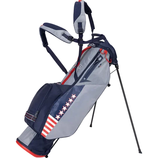 Only weighing 2.5 lbs, this is a walking golfer’s dream bag. Ultralight and super comfy to carry, it has contoured, high-density foam shoulder straps for carry comfort, a roomy, 7.5” top and six pockets including a beverage pouch. All of this and this Sun Mountain stand bag still weighs under three pounds.