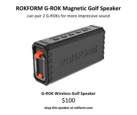 The ultimate and easy-to-use golf speaker — the G-ROK by Rokform! This baby is water and dust-proof, super tough and comes engineered with a helluva-strong magnet.