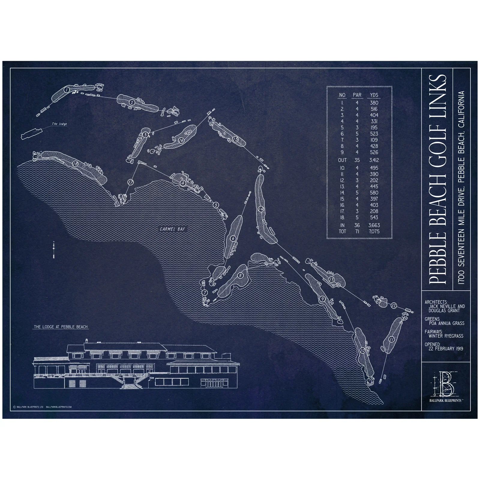 Pebble Beach Golf Links Ballpark Blueprint On Paper Print