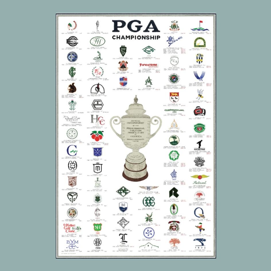 All framed prints will be hand signed by Chandler Withington. The completely hand drawn piece captures all 107 years of champions and celebrates all 73 past host sites of the championship. An original rendering of the Wanamaker trophy, annually awarded to the PGA Champion, is the centerpiece of the artwork.