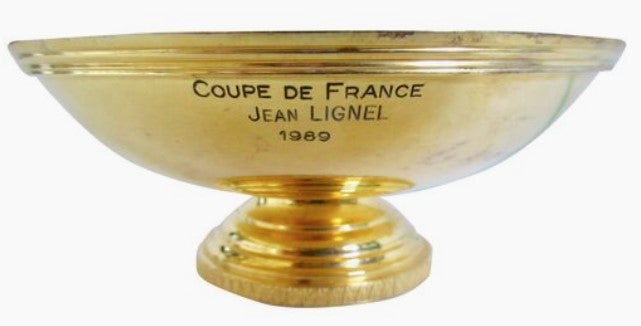 Richly gold-plated with acanthus leaf base design. Classic form. Engraved “Coupe de France Jean Lionel 1989.” Marked “Puiforcat France” with the EP arrowhead company mark. There is nothing in the world like Puiforcat.