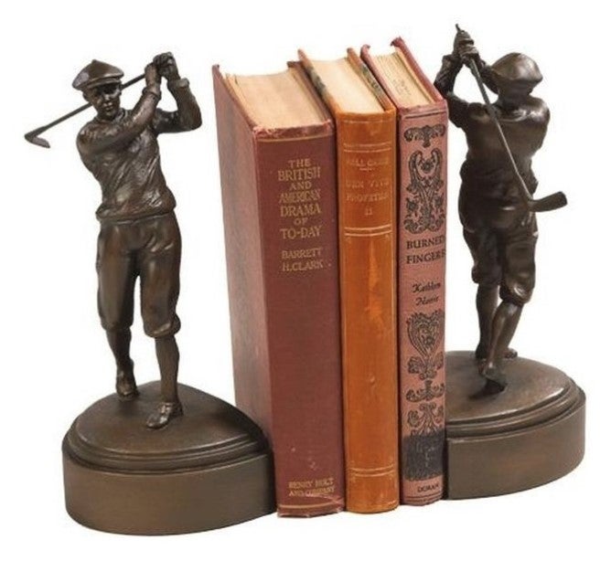Bookends Bookend GOLF Lodge Swinging Golfer Chocolate Brown Resin