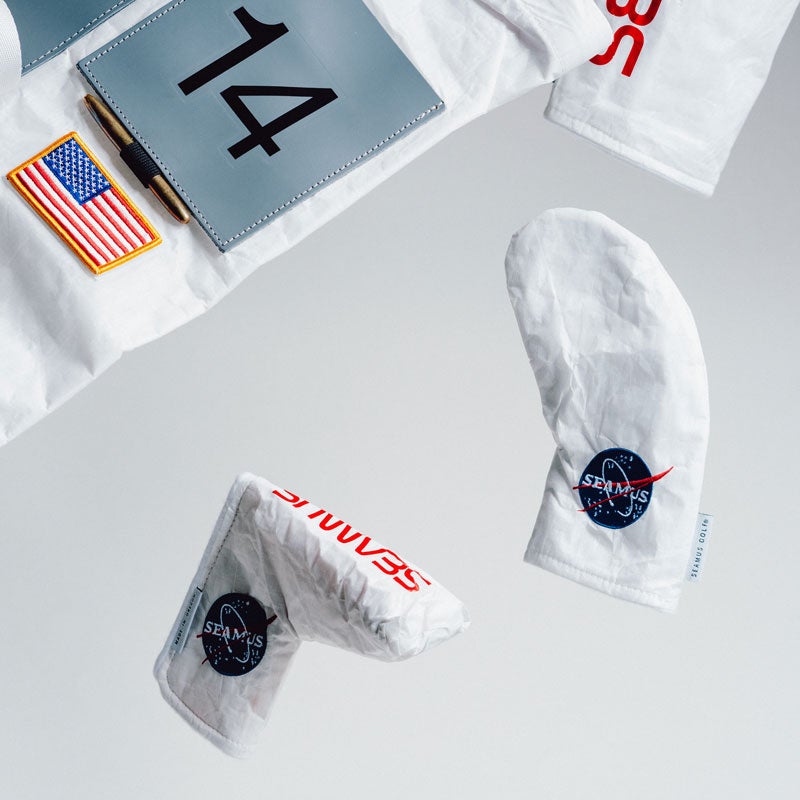 Fifty years ago, on February 6th, 1971, Alan Shepard became the first man to hit a golf ball on the moon. To celebrate the anniversary, Seamus Golf designed a sweet NASA-inspired collection of head covers, bags, apparel and accessories.