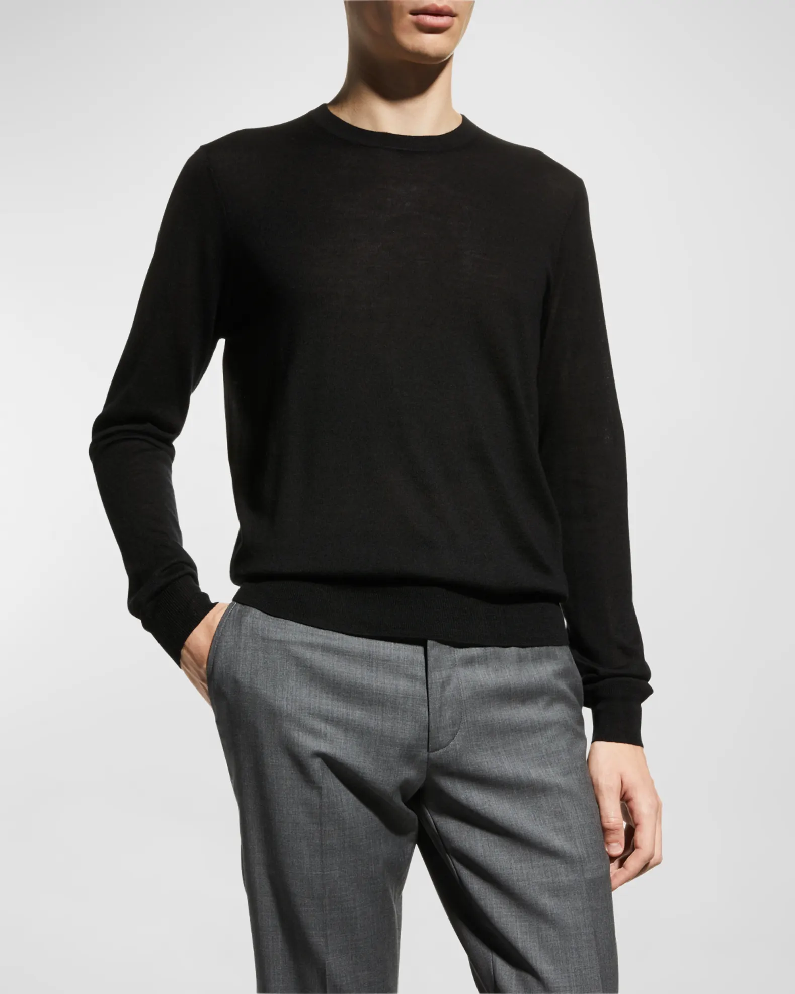 Neiman Marcus crewneck sweater in lightweight fine gauge cashmere-blend fabric.