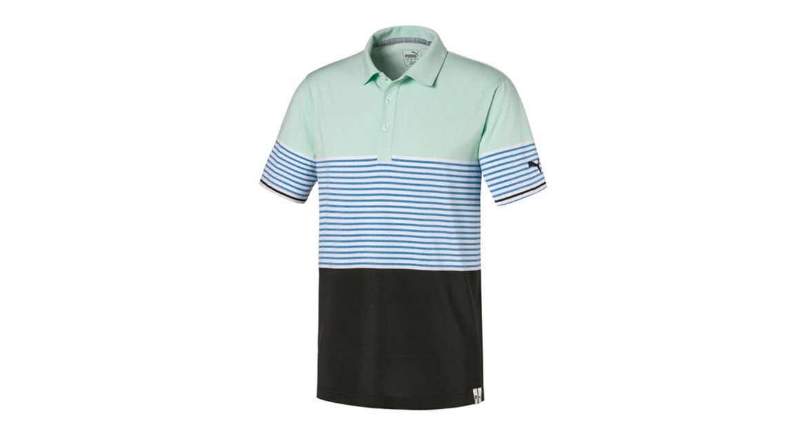 The Puma Taylor Polo features color blocks combined with striped sections resulting in a stylish polo and modern look. The DryCell technology provides excellent moisture wicking to keep you cooler on hot days. Cloudspun fabric provides an ultra soft feel with moisture wicking and 4 way stretch.