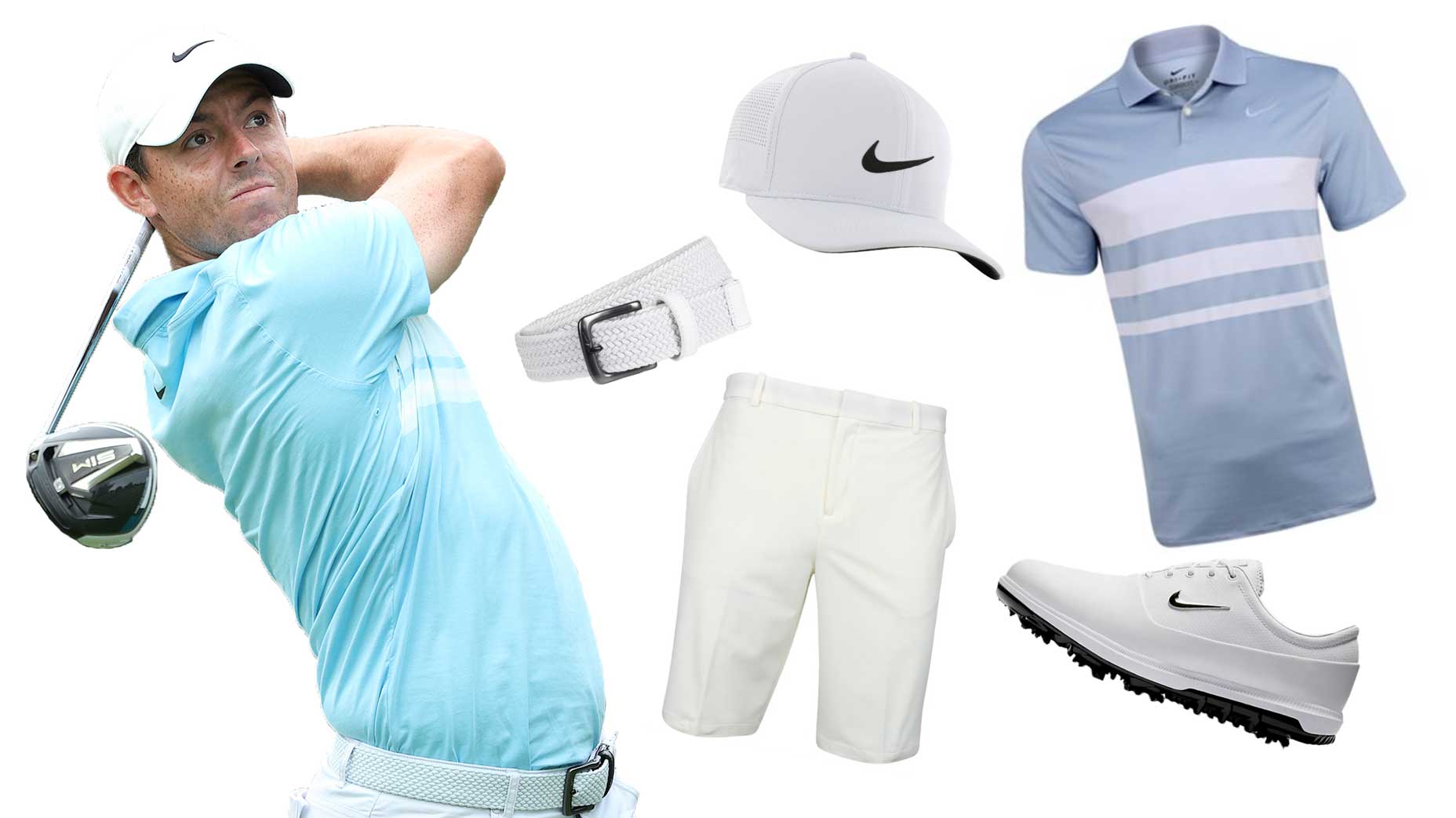This week we’re drawing fashion inspiration from the world number one, Rory McIlroy. Yes, he’s the best in the world, and his outfits live up to his reputation. No need for bells and whistles — when Rory is on the course, he’s usually wearing some variation of a striped shirt and matches his pants, shoes, belt and hat in a neutral color. Try to follow this pattern next time you head out to play, and check out some of our favorite Rory McIlroy-inspired items below.