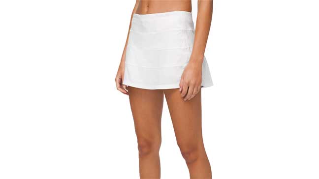 Lululemon is a go-to brand for me because they usually nail the convenience factor and have pockets in all the right places. The high quality material will last you many, many rounds, and the back pleats add in the perfect amount of feminine/flirty flair.
