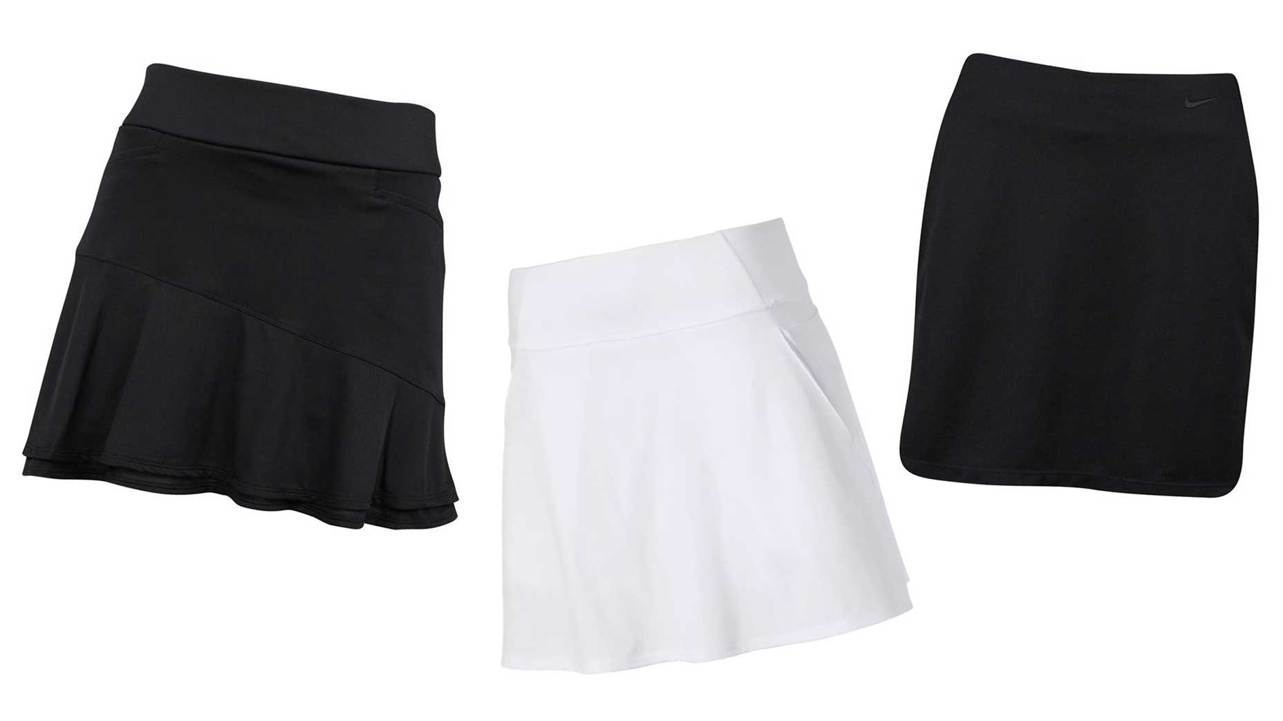 This skirt from Nike is a modest length and has comfortable inner shorts. The pockets are on the outside, like more traditional skirts, plus it has a back pocket — perfect for your glove and/or scorecard.