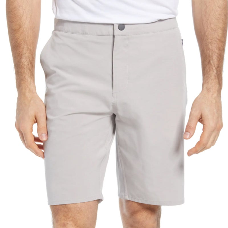These lightweight, stretchy cotton shorts feature a comfy drawstring waistband that give them a more casual vibe that can still look professional untucked.