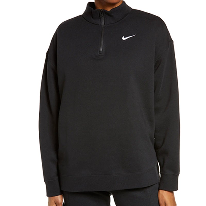 Feels like your favorite fleece hoodie, looks like a country club appropriate quarter-zip. This oversized pullover will keep you warm throughout the fall season.