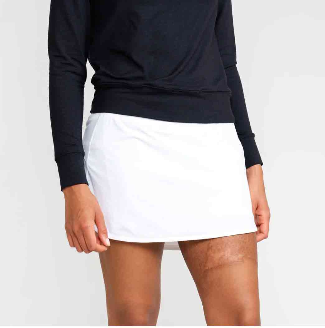 The built-in shorts liner has an elastic strip to keep them in place along with hidden pockets to secure your belongings. This skort is made for activity, whether it be a game of tennis, a walk, traveling, or shopping around town.