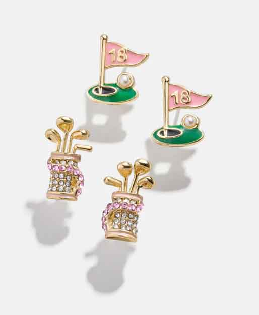 This duo includes a pair of club-filled golf bag studs and golf flagstick earrings to match.
