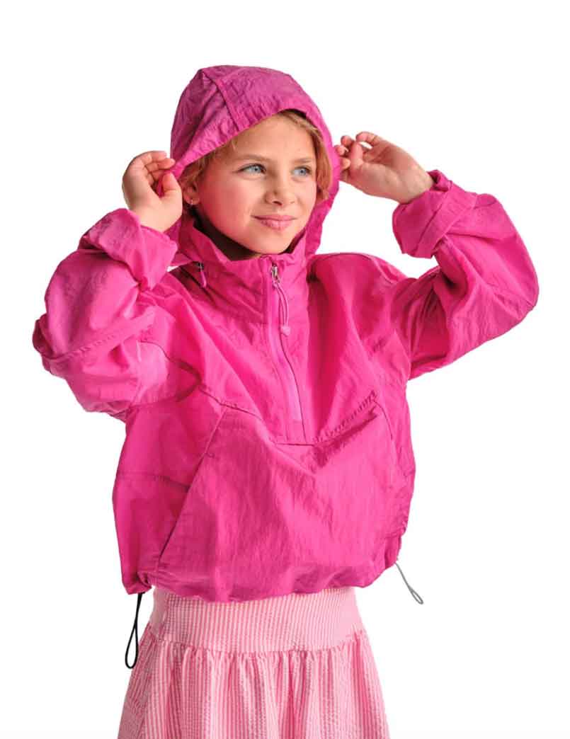 A must-have anorak crop rain pullover designed for active and trendy youth girls who want to make a stylish splash, rain or shine