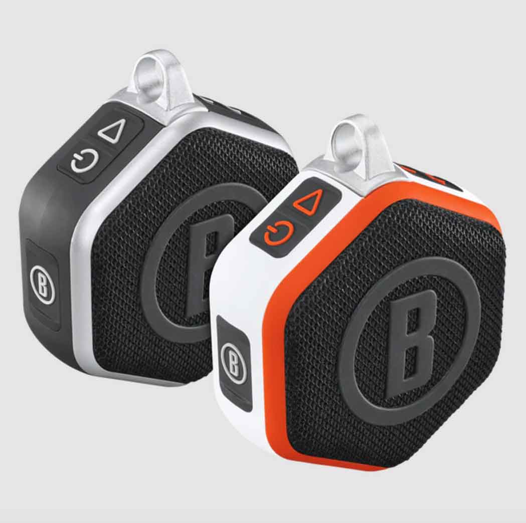 The Wingman Mini is a compact speaker that allows you to listen to your favorite tunes and get audible distances around the course.