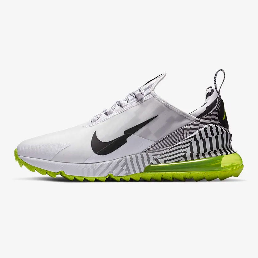 The collection includes three of their best known silhouettes — the Air Max 270 G (my personal fave), the Air Zoom Victory Tour and the Air Zoom Infinity Tour. Each shoe features an eye-catching black and white abstract striped patterned and has a lime green sole. The shoe celebrates athletes who break barriers in golf and beyond.