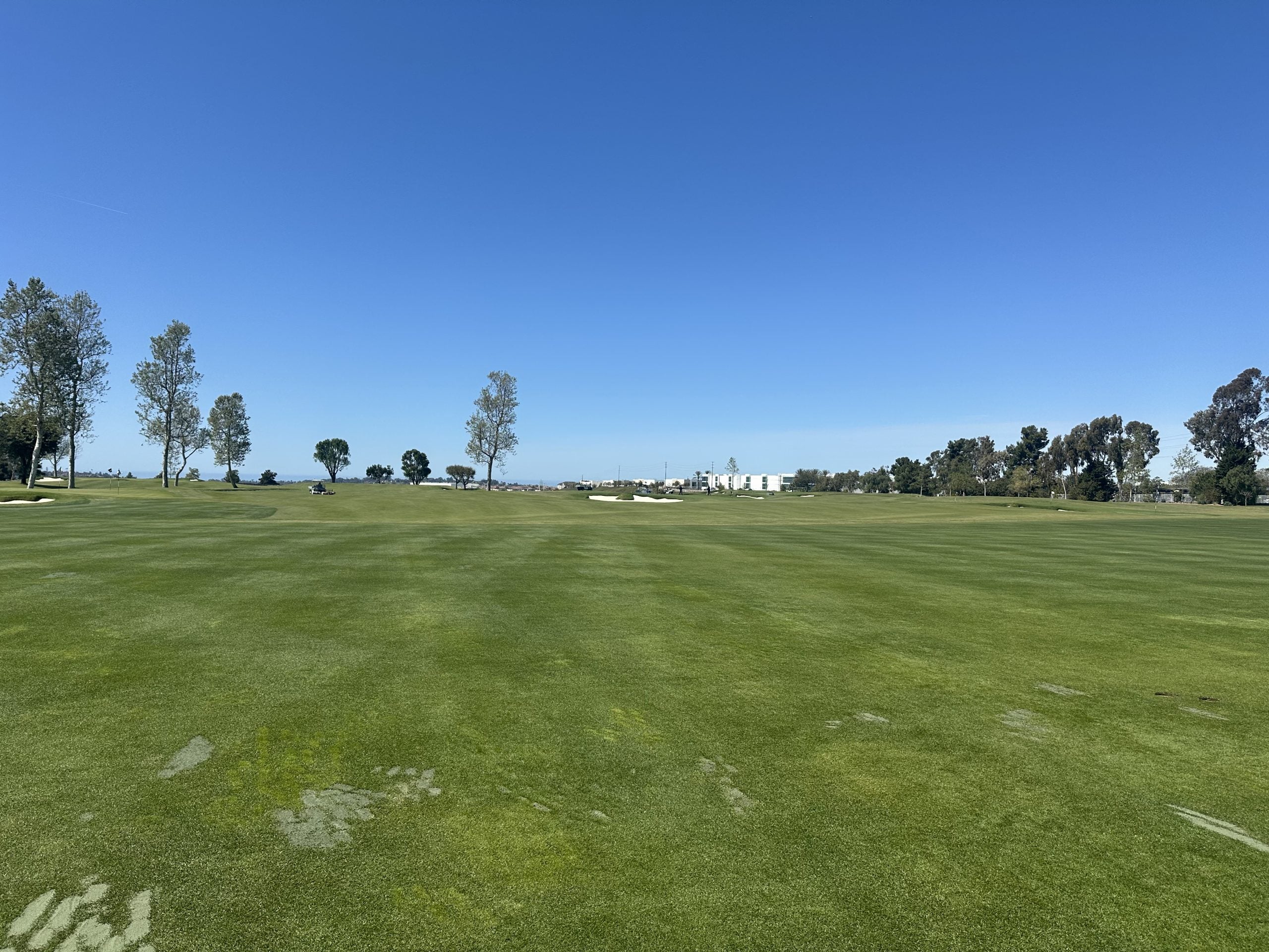 When you walk outside to the hitting area, you are confronted with an enormous, airy space that seems to run off into the ocean and stretches north to south as far as the eye can see. It’s sitting on the patio at Augusta National and looking out over the property, except this is a driving range. Digest that for a second.