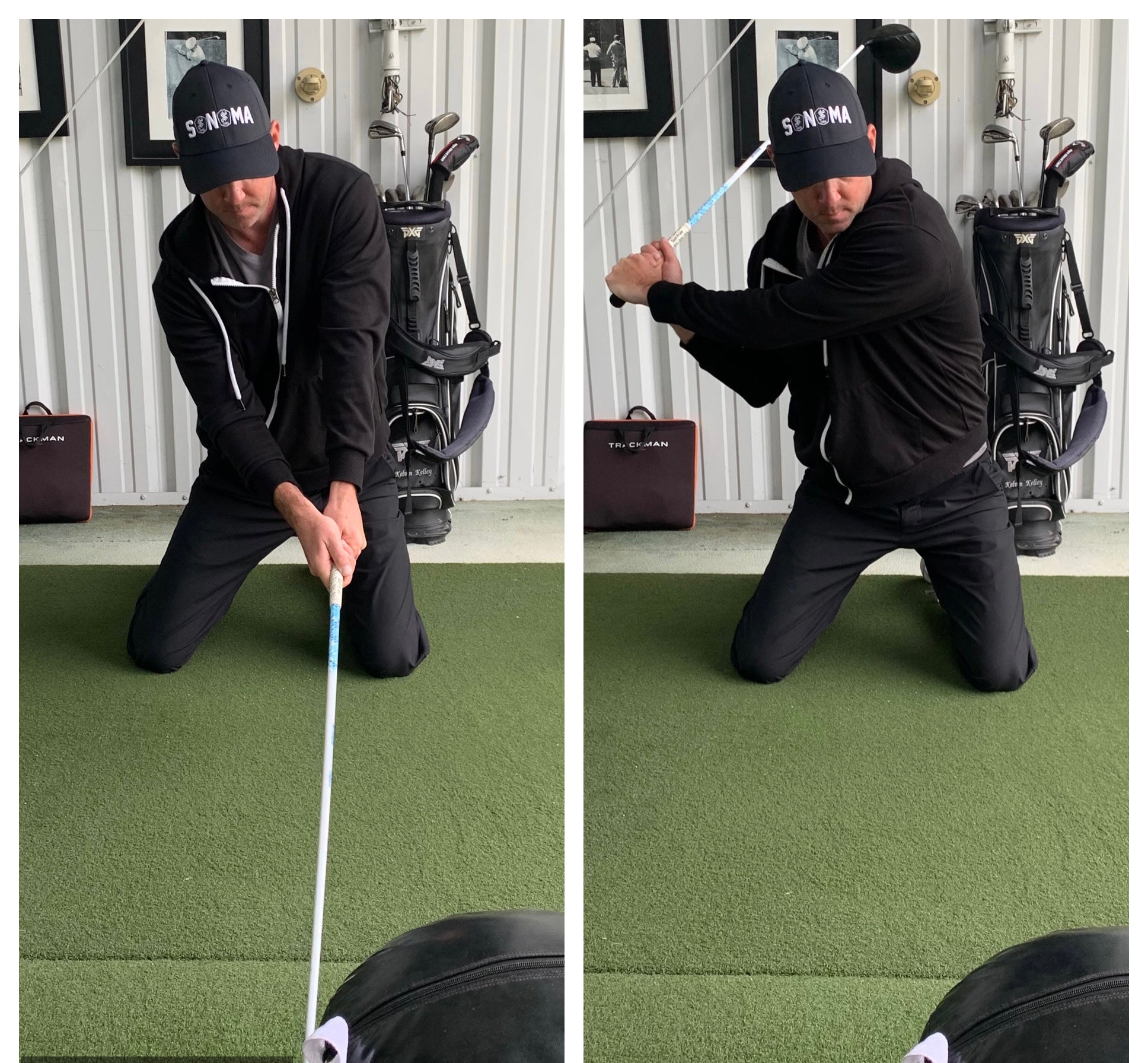 Swinging from your knees is also a great drill to produce arm speed, too. Being down in this position will stabilize your body, getting rid of excess motion generating arm speed. Anytime recreational golfers can limit extra moving body parts in the golf swing, they will have a greater chance to produce consistency.