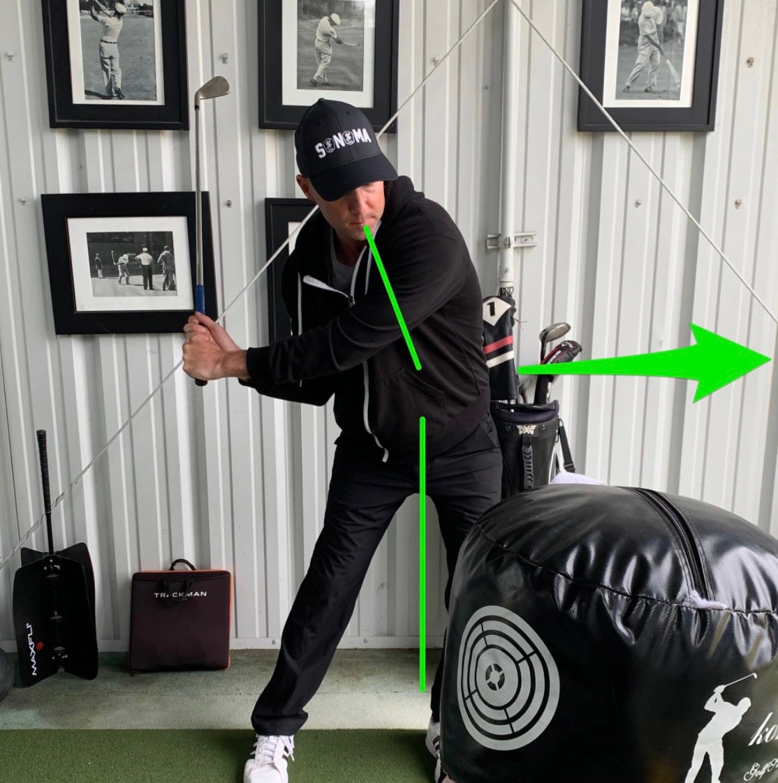 This drill forces your upper body to coil in the proper direction and retain your original body shape from address. For a player that has a lot of left side bend or tilt in their golf swing, they will often hit too far back behind the ball. This drill also eliminates the lower body from bailing you out in the golf swing, which is matchup move most players need as product of their body being out of position.