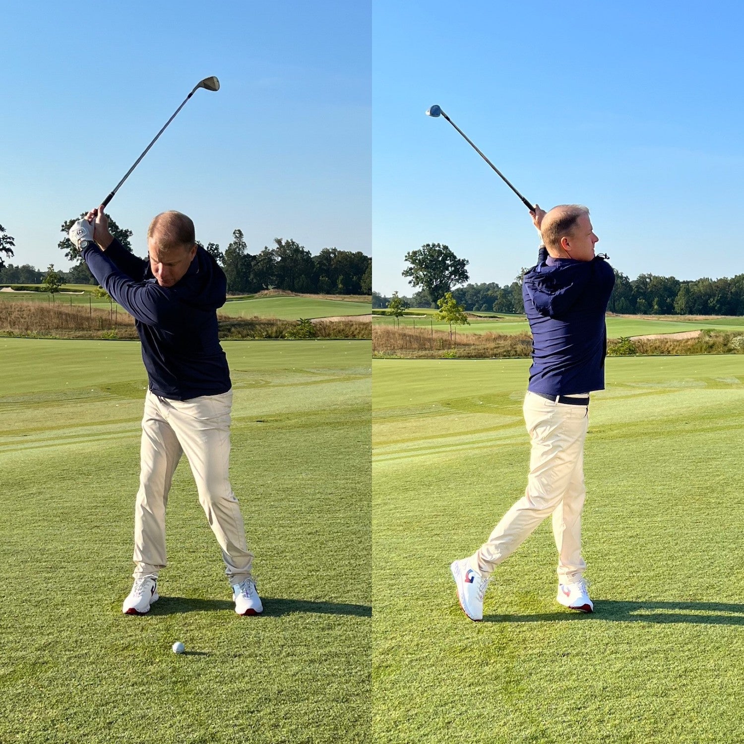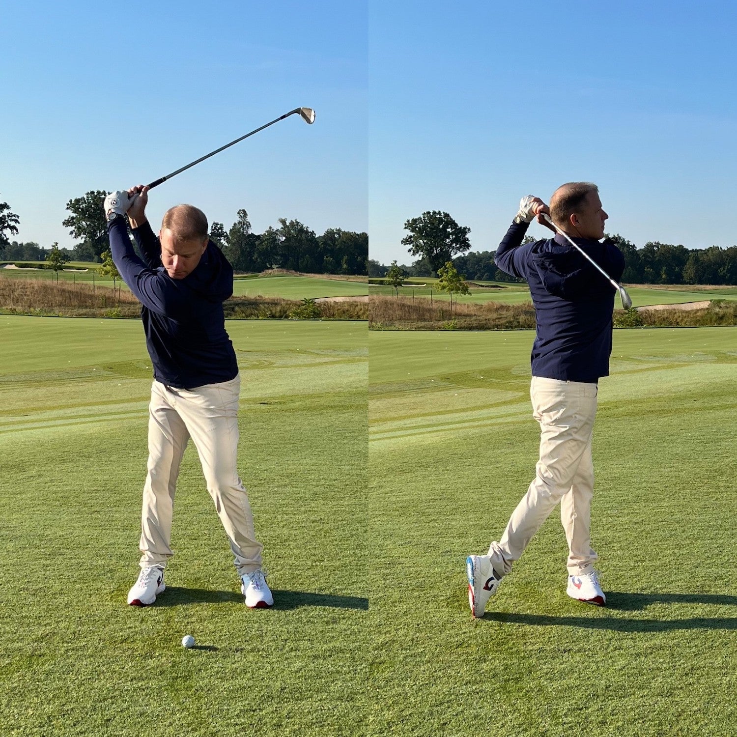 Now, it’s up to you whether you think about the backswing and follow through lengths on the course, since everyone is a little different in that regard. But in practice, knowing how far you take the club back and through will only help you feel each shot, allowing you to have better approach shots during your next round.