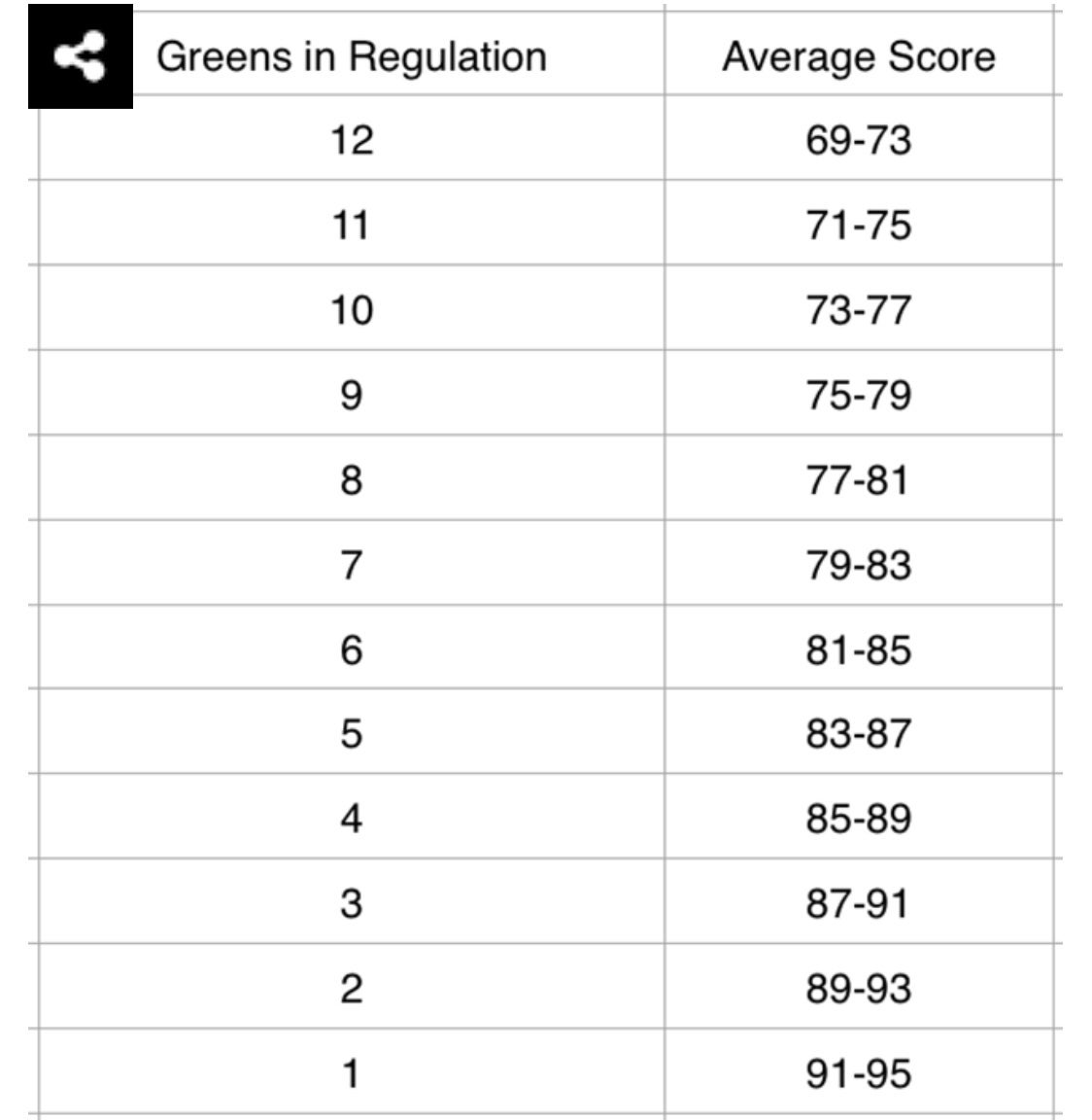 Keeping stats is an easy way to see what you need to work on to improve your yardage control and hit more greens. Greens in regulation (GIR) is the most important stat in golf, because it has a direct correlation to your score (picture above).