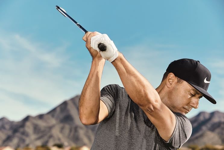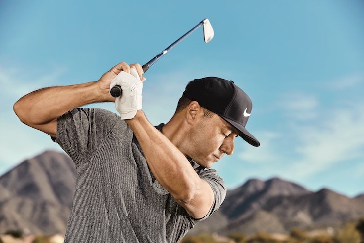 Once you feel your left arm collapse or your right elbow fly out behind you, you’re toast. Getting either elbow above your chest removes any structure from your backswing— and invites a slice.