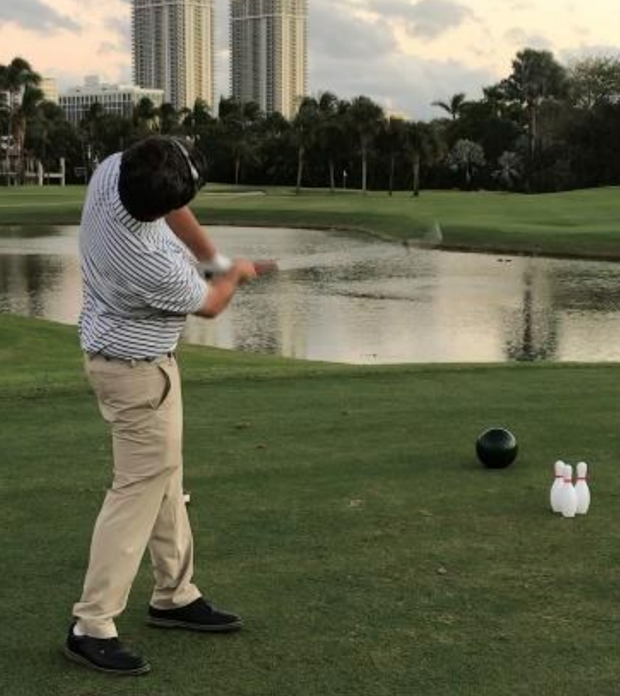 According to Addison Craig, the head professional at The Bridge Golf Club, he developed a drill that uses a bowling ball in order to correctly transfer weight in the golf swing to the lead side.