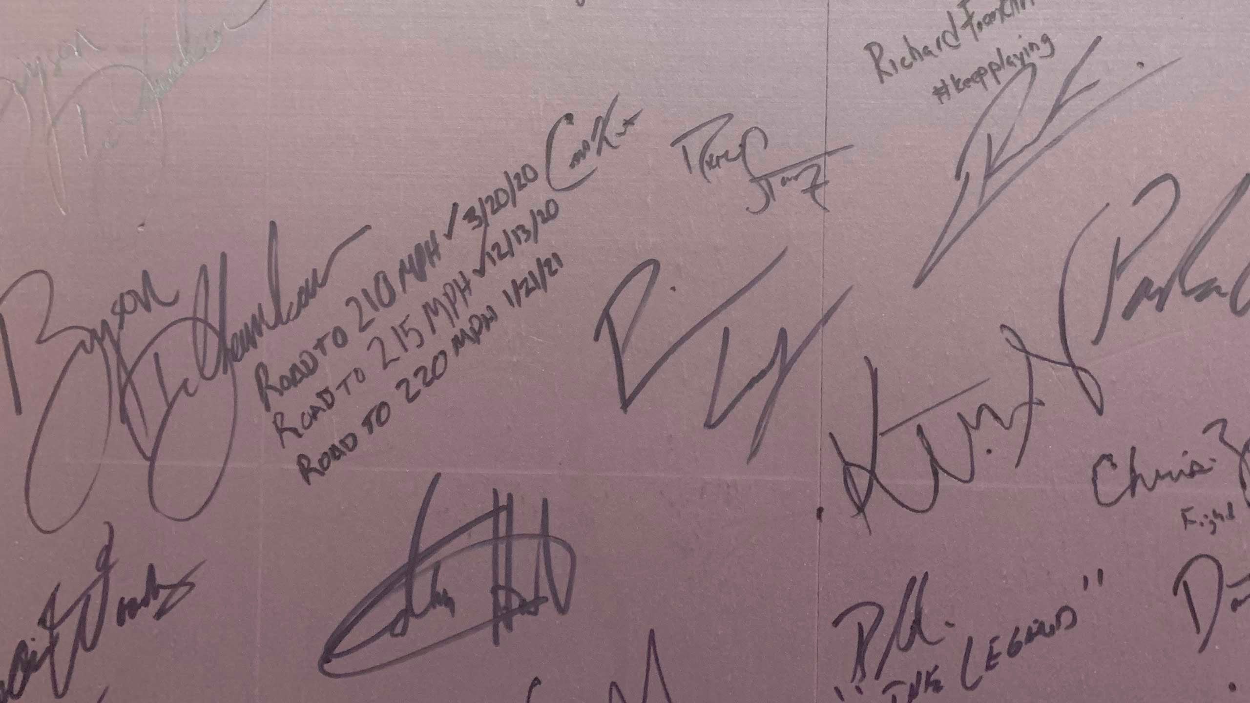 That’s today’s goal: 215 mph ball speed. Swing the driver fast as you can as many times as it takes to cross that threshold. DeChambeau hasn’t accomplished it yet, and he’s reminded by some ink on the nearby wall. “Road to 215 mph” is written on the styrofoam inserts that protect the windows in this spacious 5-bedroom. The message has been there for five weeks, ever since he reached his previous goal of 210.