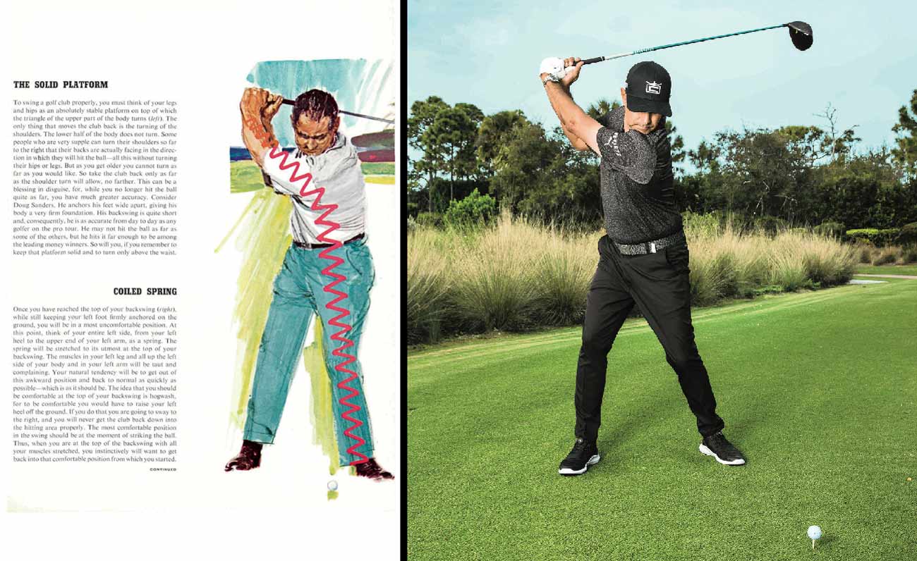 MY GRANDFATHER’S TAKE: The coiled spring is a vivid image that my grandfather liked to use to convey a timeless idea: the idea of loading, turning and creating tension in the backswing. The big key here is that you can’t unwind what you haven’t wound. Coil that spring, wind it up and build plenty of tension so it will want to unwind all at once.