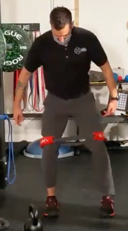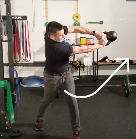 The last exercise Dr. Anderson and Coach Johnny demonstrate is kettlebell hip rotation strength exercise that will help you develop stability and core strength. When choosing a weight for this exercise, pick something you can do 10-15 reps with while maintaining good form. Once you’ve picked an appropriate weight, get into a split stance with one foot forward and bring the kettlebell up. With your arms locked out, rotate away from your body. This will translate extremely well to your golf swing.
