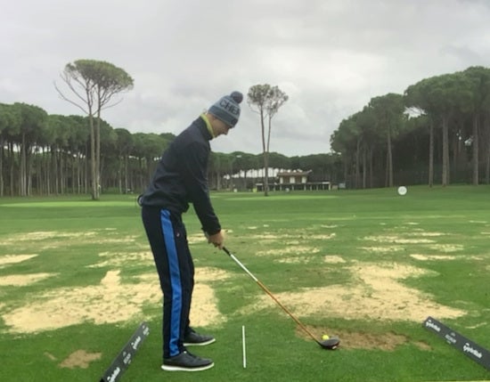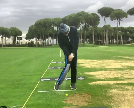 With Elisey, he can sometimes place the ball too far behind his swing center, exacerbating push shots when he gets the club trapped behind him. Like Jim Furyk, Elisey likes to stand taller and narrower at address. Doing so forces us to examine his ball position, making sure it’s not caught behind him with any shot, including his driver.