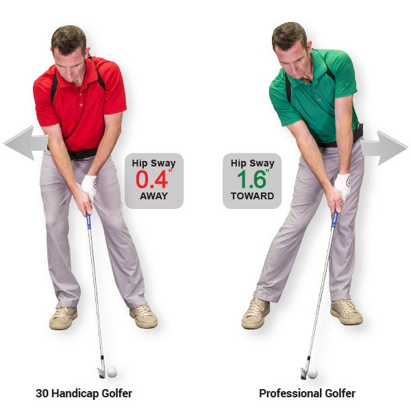 The problem is, golfers tend to take it to the extreme. They try to load into their trail side, and end up sliding away from the target on the backswing. They’re so far away from the target they need to slide back towards the ball on their downswing just so they can make contact. GOLFTEC found in their study that higher handicaps slide their hips away from the target about 1.5 inches more than lower handicaps. It’s why, by the time they get to impact, their hips are about half-an-inch further away from the target than where they started.
