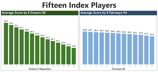 After looking at Stagner’s data, it’s clear which stat is more important for the average golfer: Hitting more greens in regulation (GIR) — and it’s not even close!