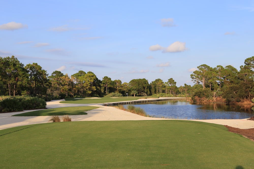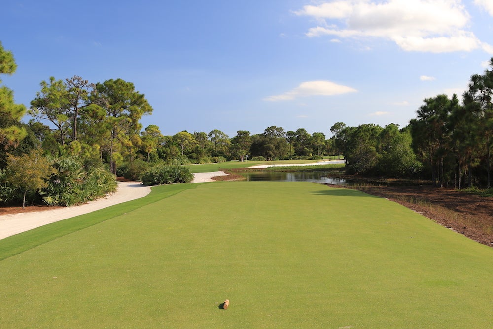 “You hit it out of a shoot, there’s a bunker and canal all the way down the left side. You can’t see off the tee, but the water cuts in a little bit. If you hit it too far left, it can kick down into the hazard. If you hit it into the bunker, it’ll kick into the hazard. You’ve got to hit a perfect drive down the right center, which gives you a good angle.”