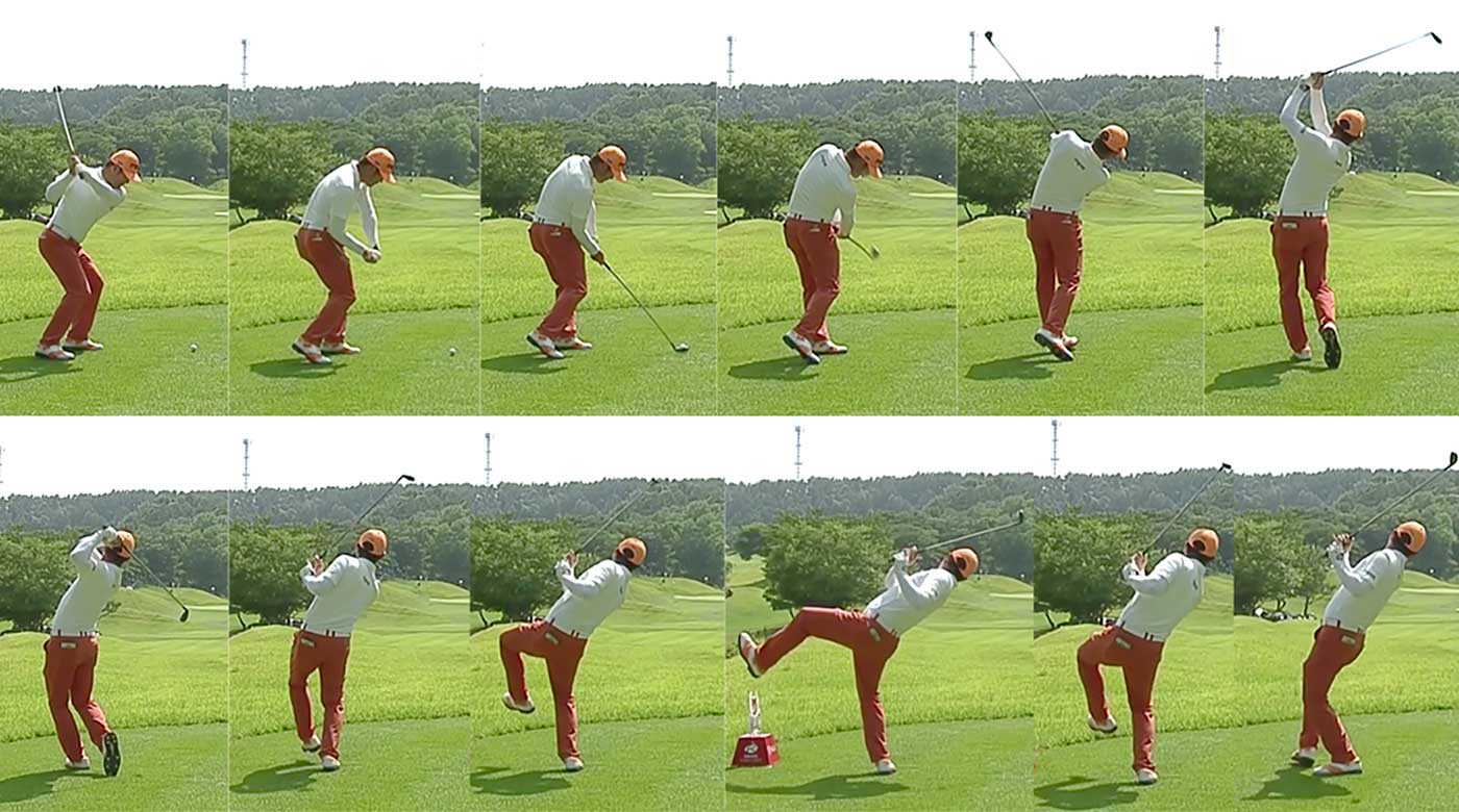 His downswing fundamentals are sound, and even after he hits the ball and it’s long off the clubface, you can see Choi’s body is still in a very conventional position. His follow-through is more a reaction, some combination of nervousness and flair. And that’s fine. The ball is long gone by that point. If that makes him feel better, then dance away. It doesn’t affect his swing negatively, and the results obviously speak for themselves.