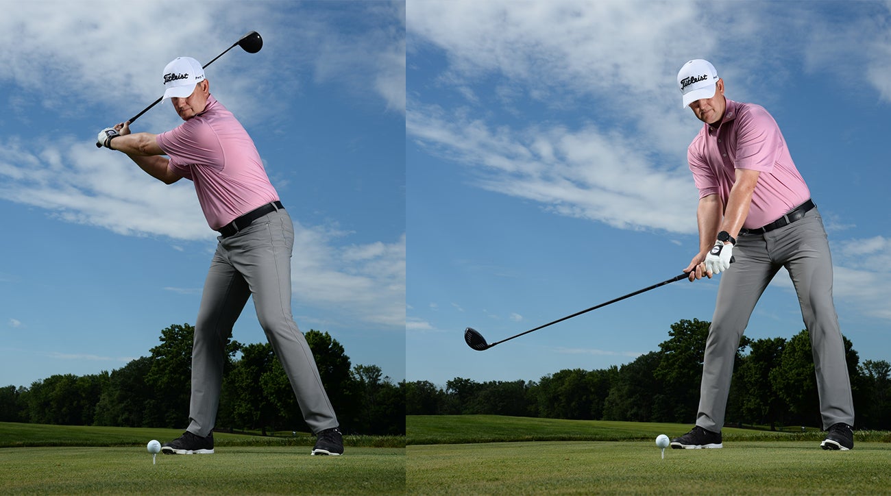 “We’re going to go hip high and feel like we twist the face down towards the ground, go up to the top — where we’ll continue to feel like we’re twisting the face more down to the ground. Then come on down and learn how to hit it straight from there.”