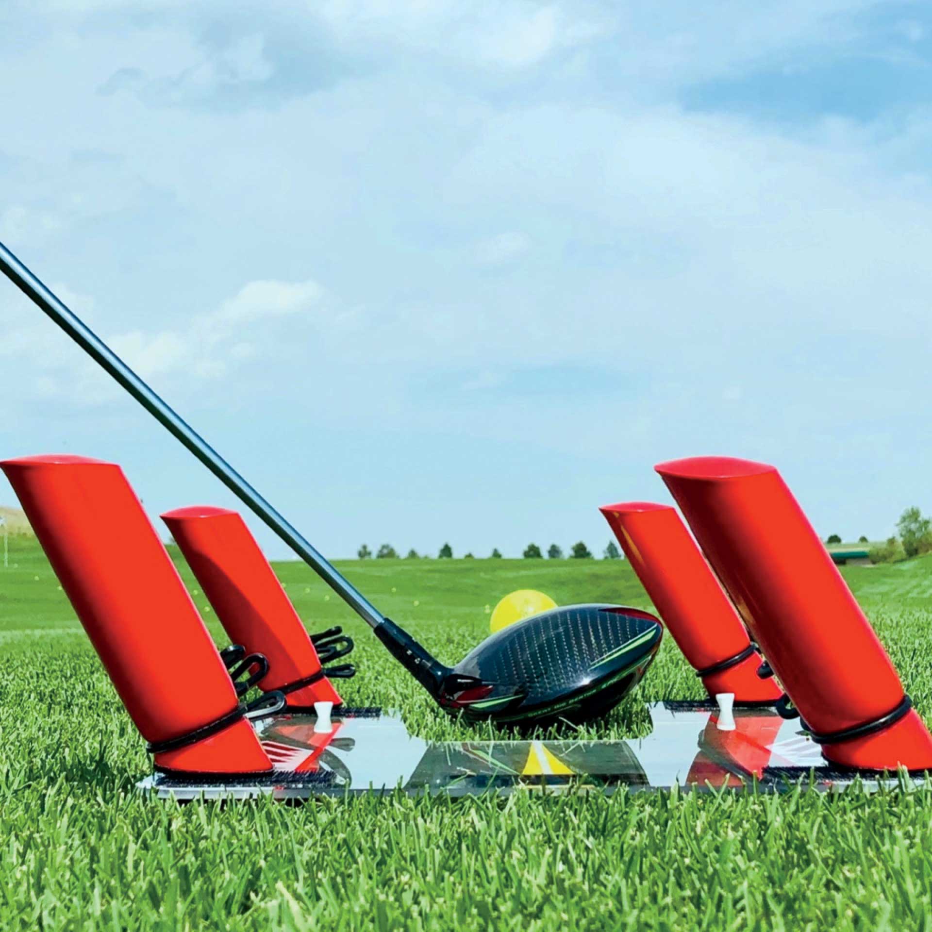 Peel and stick the boxes when and where you need to improve your rotation and perfect your swing path.