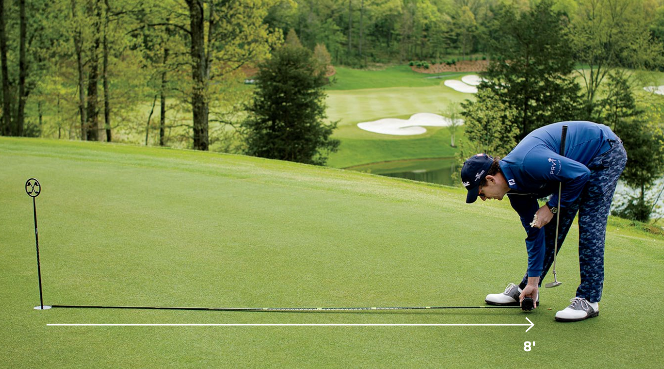 Start by finding an eight-foot putt on the practice green with a small amount of break, then follow these four steps.