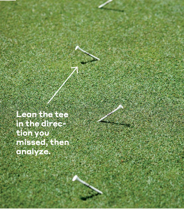 3. If you make a putt, push the tee into the ground. If you miss it to the left, tilt the tee to the left. If you miss it to the right, tilt the tee to the right.