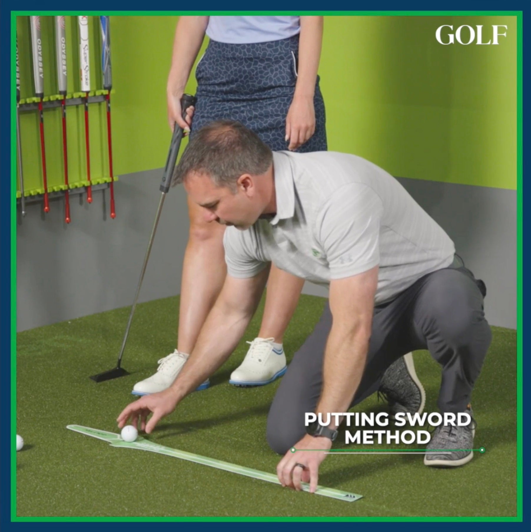 If you don’t want to, or can’t, putt down a line, then you can use a yardstick ruler instead. Simply lay it on the ground and place a golf ball on it, then hit putts making the ball roll down the ruler. If you do that, Clearwater explains, you know you’re starting your golf ball where you want.