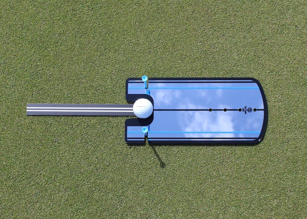 The mirror also has places for tees to be placed as gates, which helps him ensure that he’s consistently making a solid stroke.