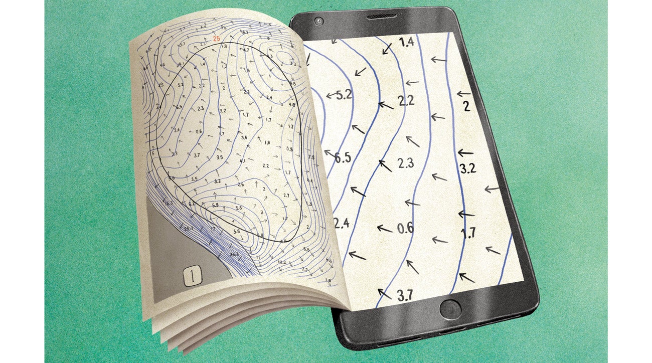 Our club has green-reading contour books, but the print is so small that I can’t make out the details. I took a picture of each page with my cell phone in order to be able to enlarge the image enough to see the slopes. A competitor called me out, citing a prohibition against electronics in tournament play. I said it was previously compiled material. Who was right in this blowup?