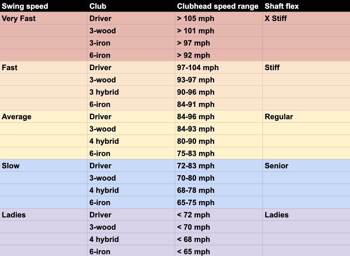 One of the most important things you need to be aware of is what shaft flex is right for you. And although it’s not the only factor, looking at your swing speed can provide a general guideline to help you determine which shaft flex you should be playing.