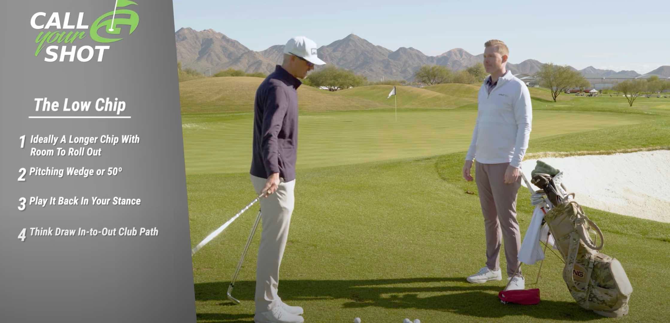 Best used for when you have lots of green to work with, the trundling low shot will tend to roll more than it flies. To hit it Knous says to choose a low-lofted club and play the ball back in your stance