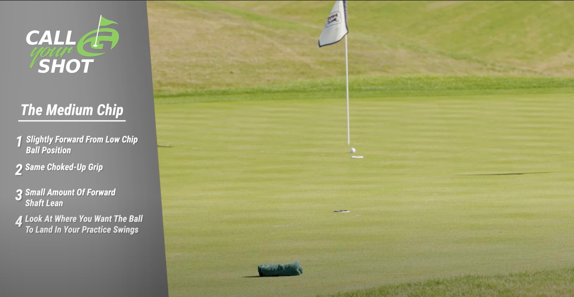 For something a little higher — but not an out-and-out flop shot — choose a club with a bit more loft and move the ball a little more up in your stance. The key tip for this, Knous says, is to look at the spot where you want your shot to land while you’re making practice strokes.