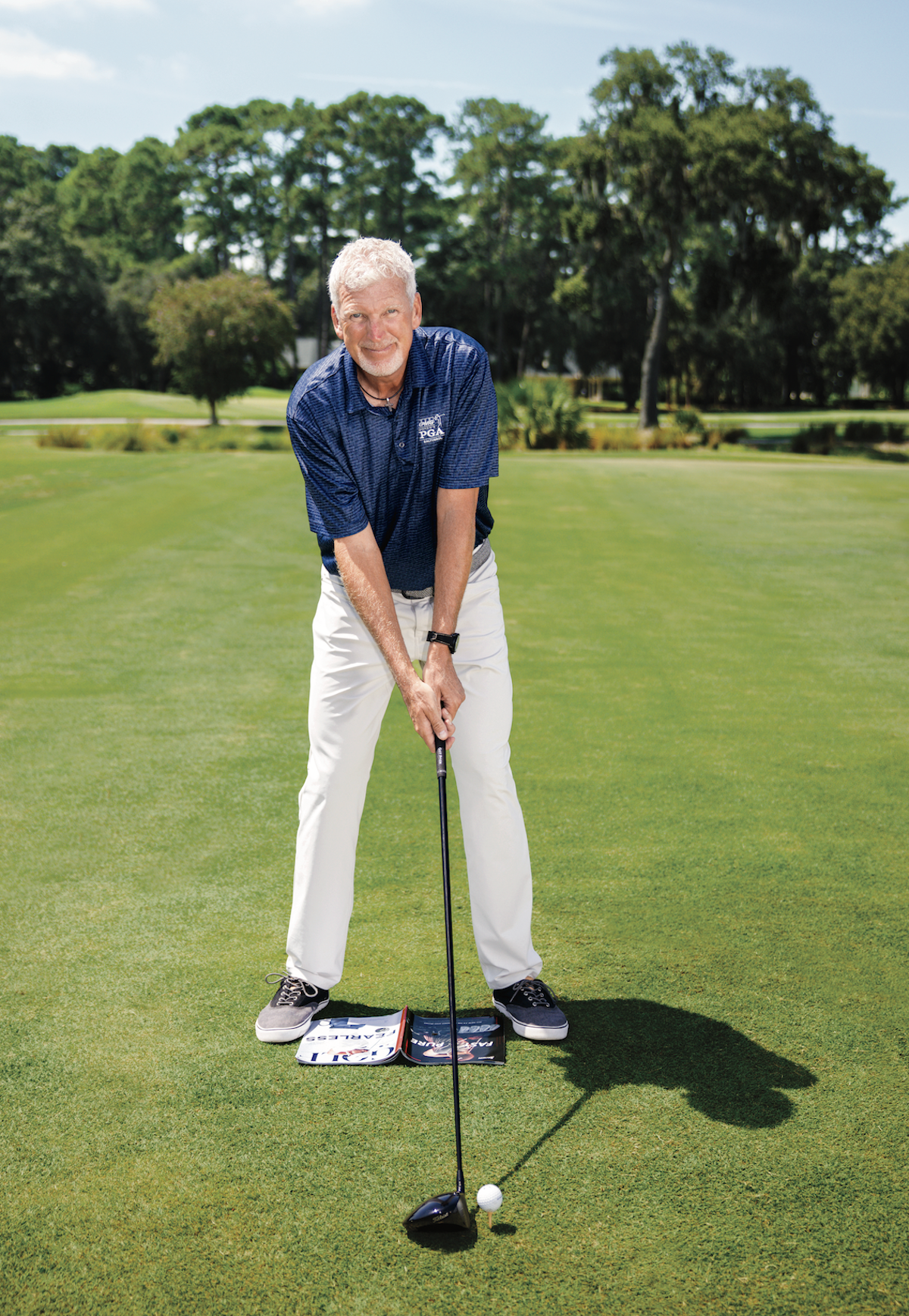 A full swing deserves the full issue! Simply fold open your GOLF magazine, and then you have a good starting position for the width of your driver stance (roughly shoulder width or just a tad less).