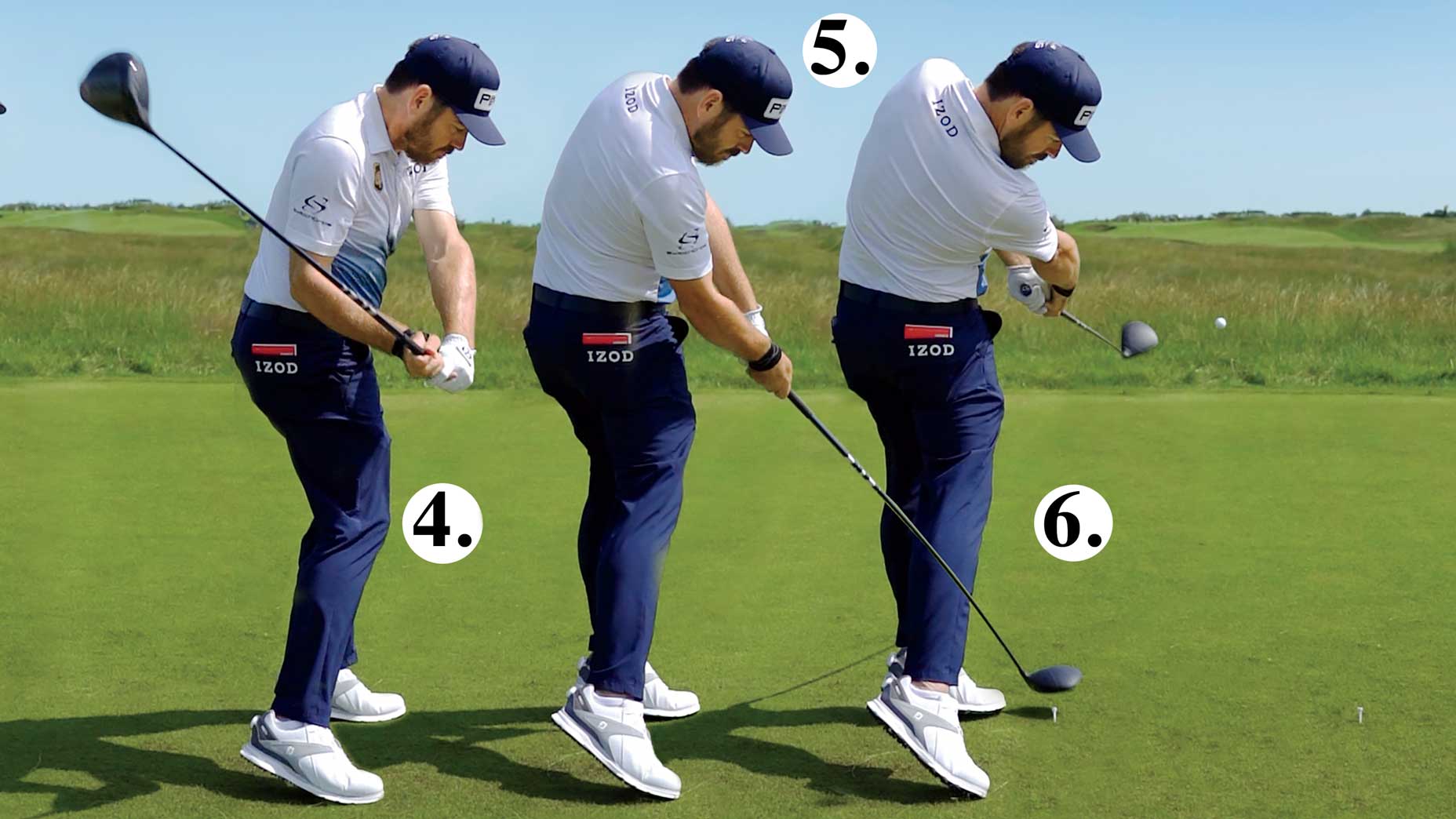 Louis refers to this as “releasing down the left without the face closing,” and he does an incredible job at it. There’s simply no “flipping.” Having the confidence to release the club like this without fear of the ball going left is a game changer.