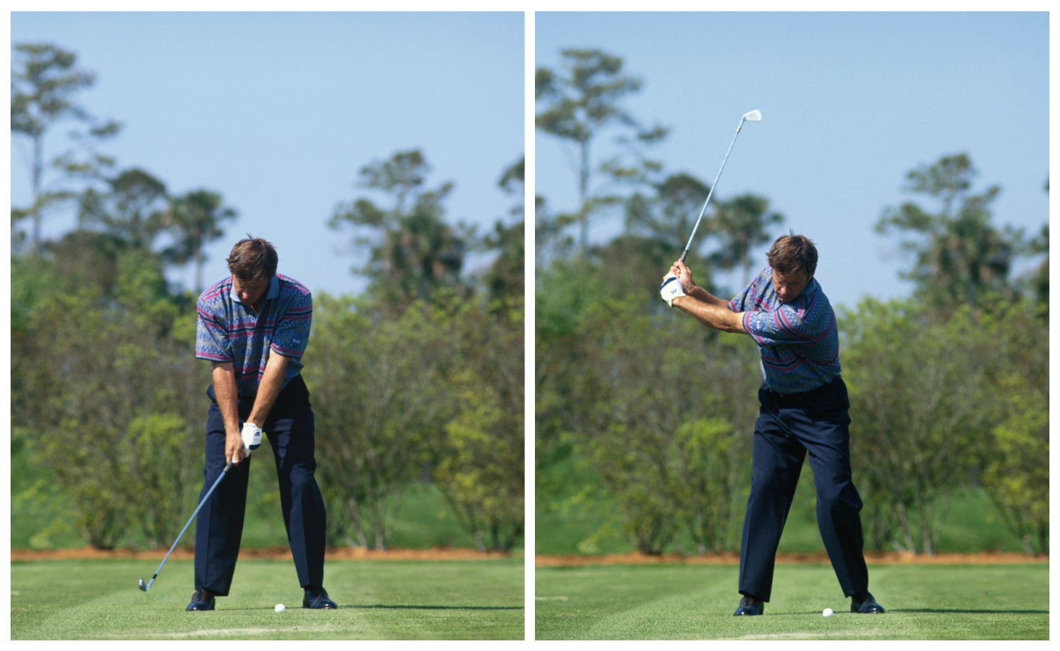 The key to Nick Faldo’s golf swing is in his takeaway. The first two feet the club swings back sets the sequence for the entire golf swing. When rebuilding his swing in 1985, Faldo and his coach realized the importance of this. Faldo would spend countless hours “pre-setting” the club to hip high then begin the swing from that position. Here is that pre-set position.
