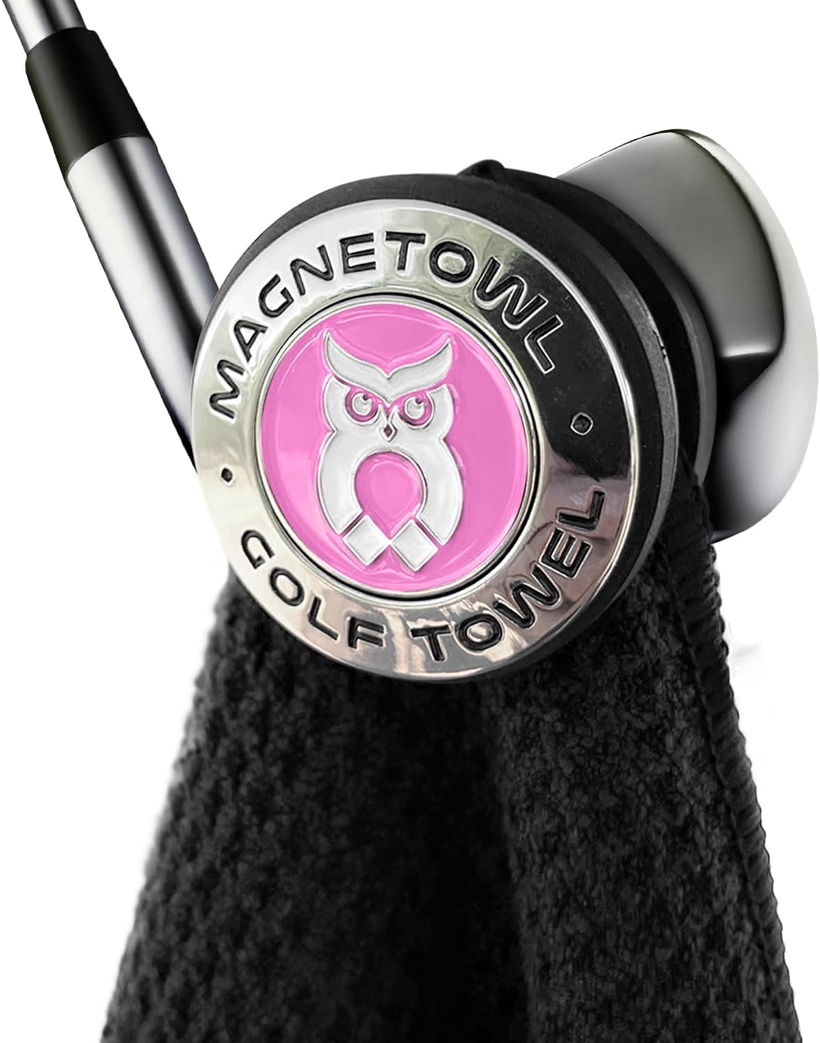Conveniently pick up the towel with your golf club without needing to crouch down. The strongest magnetic golf towel clip in golf—it holds up to 25 lbs of pull. You can attach the Maget Owl magnet to any towel of your choice.